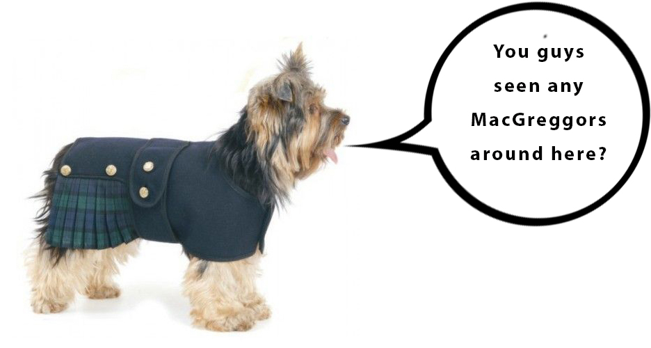 In addition to publicly beheading MacGregors for entertainment while eating dinner, the Campbell clan burned with a special hatred for clan MacGregor. The Campbell’s even bred a special dog, nursed by suckling women from the MacGregor clan , to hunt and kill MacGregor clan members more effectively. The Campbells believed that by nursing from a MacGregor woman from birth, these dogs would be able to pick up on the MacGregor scent more efficiently. Now that's a BAD DOG.